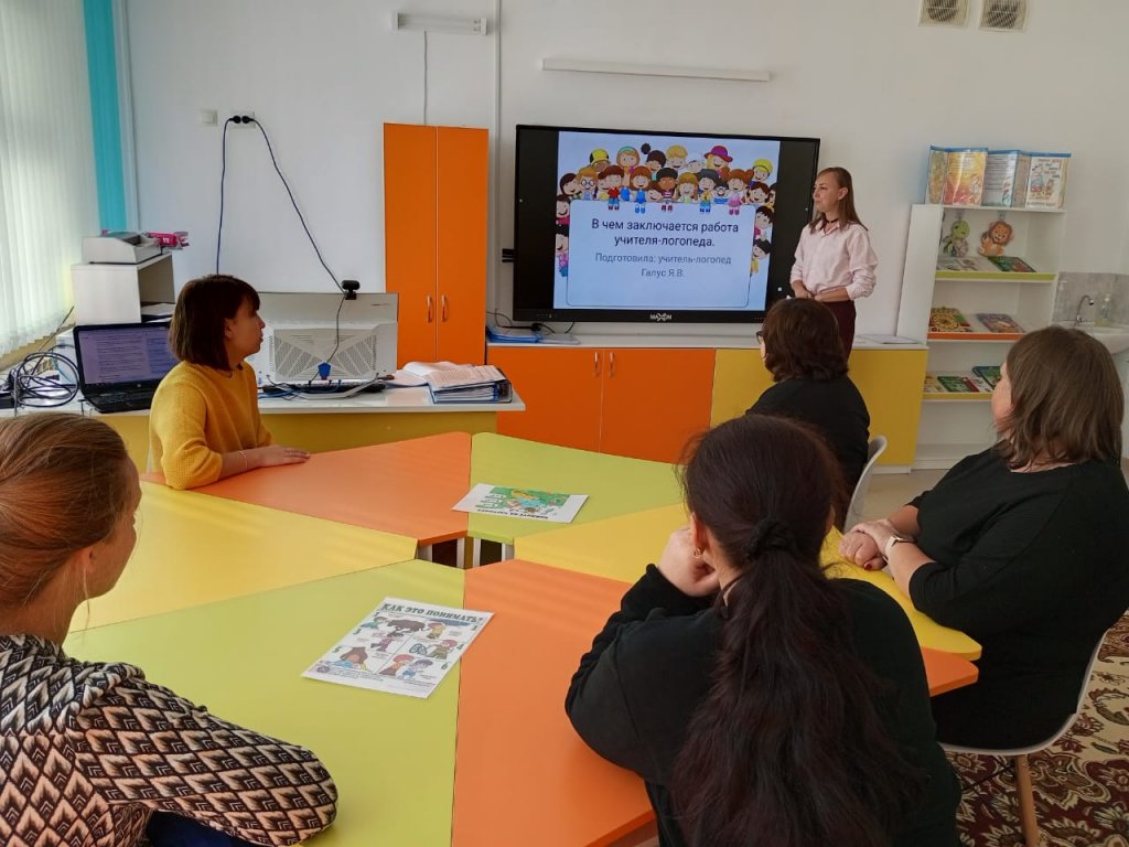Инклюзияны қолдау кабинетінің логопеді Я.В.Галус оқушылардың сөйлеу тілінің даму деңгейін талдайды, жеке және топтық түзету сабақтарын жүргізеді, ерекше білім беруді қажет ететін балалардың дыбыстауын және сөйлеу тілін дамытуға арналған жаттығуларды іріктейді. Тексеру нәтижелері бойынша ата-аналар арасында кеңес өткізіліп, үй тапсырмалары мен әрі қарай сүйемелдеу жөнінде ұсыныстар берілді.