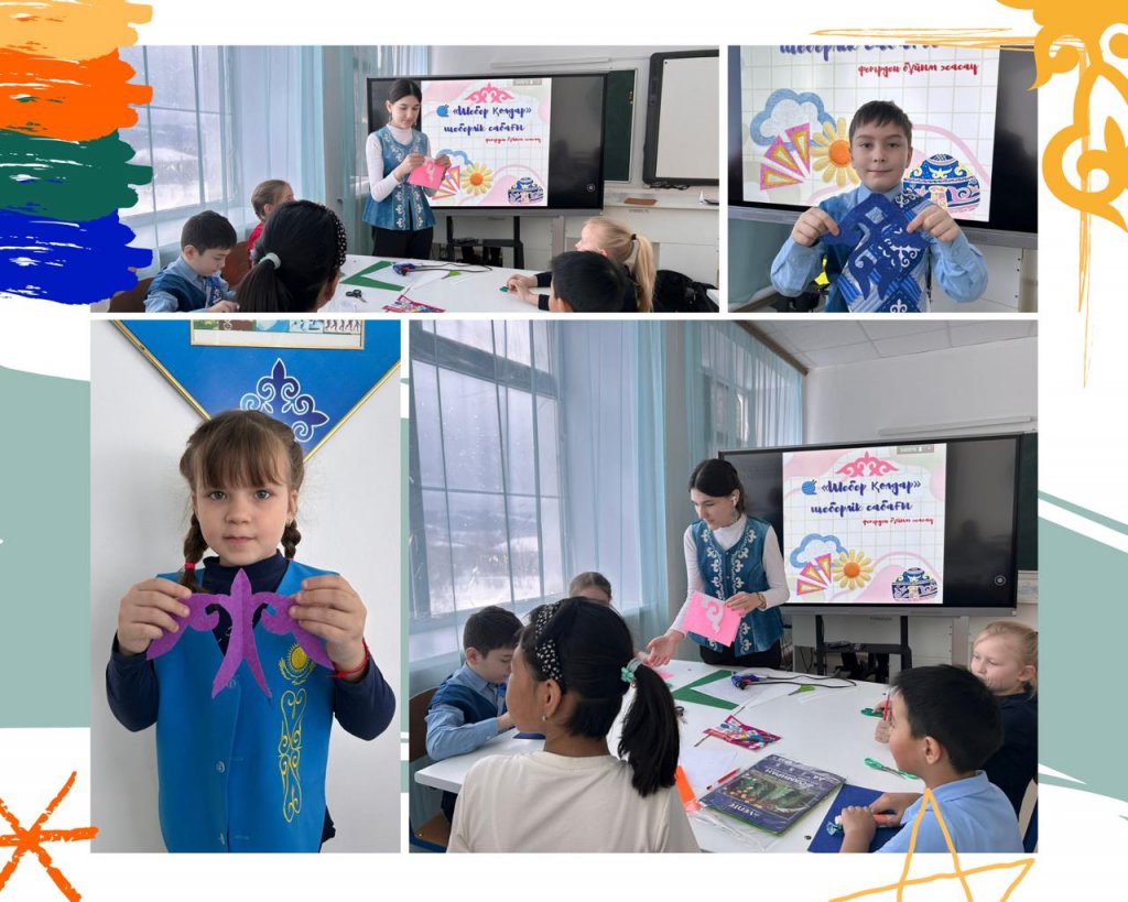 Шеберлік сабағын 10-сынып оқушысы Шастиловская Ксения жүргізді. Сабақ барысында ол оқушыларға фетр материалымен жұмыс істеуді үйретті. Оқушылар үлкен қызығушылықпен әдемі ұлттық ою-өрнектерді қиып, өздерінің шығармашылық қабілеттерін көрсетті.